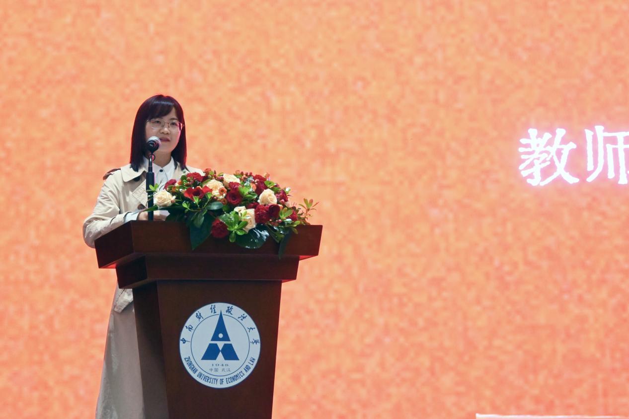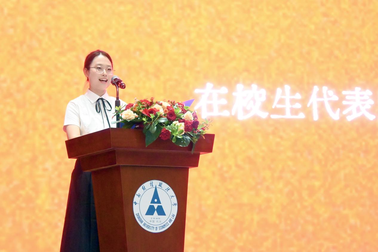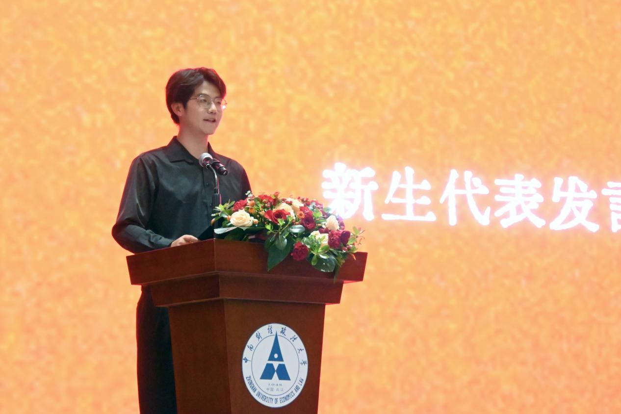 教师代表郑弦以“大学姐”的身份,与新生分享了关于大学成长的真诚体悟。她鼓励同学们尽快完成从被动接受到主动探索的转变,充分利用学院提供的丰富资源,在自主学习中夯实根基,在广泛尝试中认识自我。她希望新生不畏迷茫,勇于实践,将校训院训内化于心,在一次次试错与反思中砥砺前行,最终成长为既有扎实专业能力,又有清晰价值坐标的创新型人才。