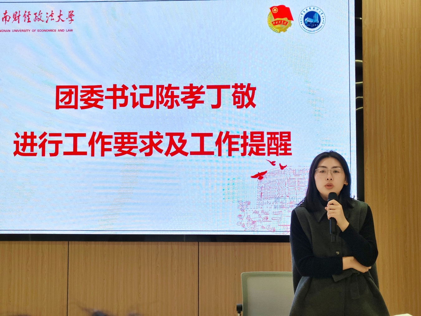 最后,陈孝丁敬老师强调工作要求:一是严守纪律规范,各部门需严格遵循时间节点推进任务,杜绝拖延;二是提升协作效率,尤其在多部门联合开展的志愿活动、运动会等工作中,要加强沟通衔接,避免流程脱节;三是强化宣传意识,将学院关于新闻宣传工作的要求融入各项工作,通过优质宣传展现学院团学风采。同时她鼓励学生骨干以此次会议为契机,将宣传技能与工作实践结合,既确保任务“做得实”,更实现成果“传得广”。