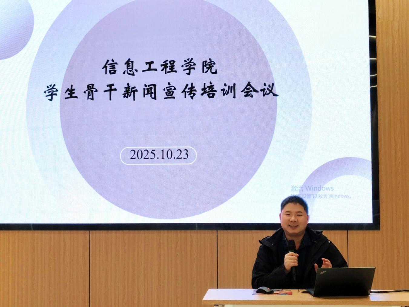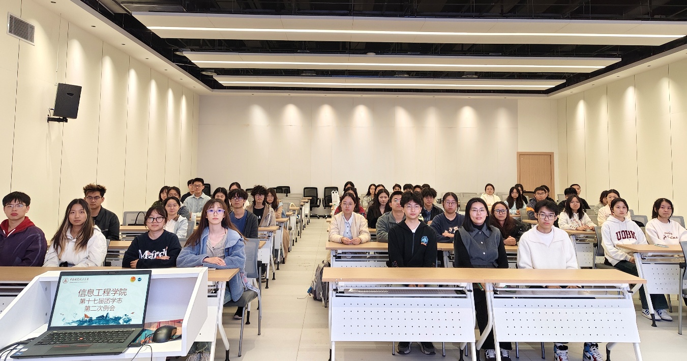 (学生通讯员 张宜欣)为强化学生骨干新闻宣传业务能力,统筹推进团学志10-11月重点任务,信息工程学院于10月23日14:00在双创楼B栋402会议室召开学生骨干新闻宣传培训会议暨第十七届团学志双月例会。会议由学院学生会主席团成员郭峰岑同学主持,学院党委副书记石龙、团委书记陈孝丁敬老师和团学志各部门成员45人参会。