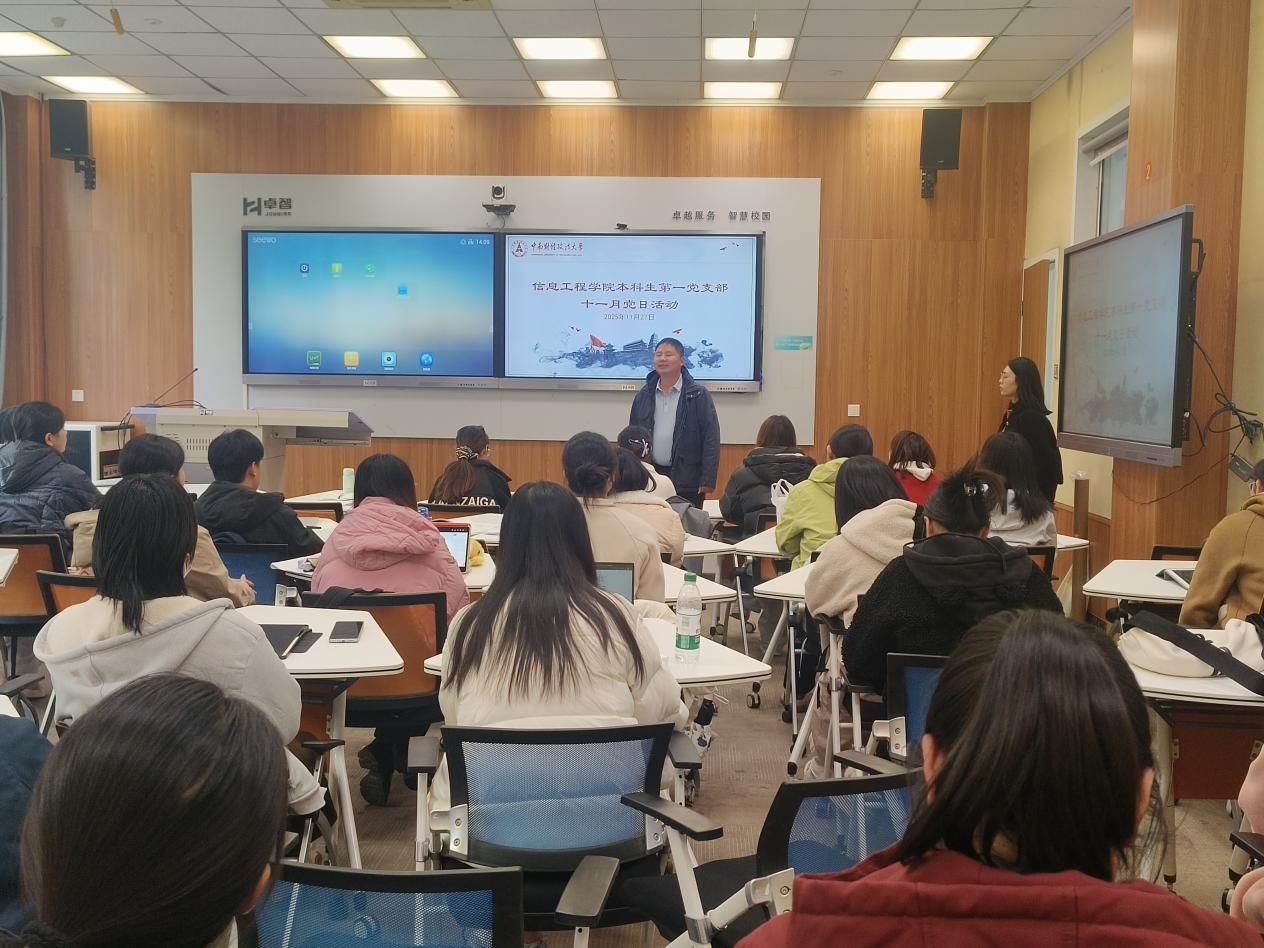 11月27日,学院党委副书记石龙在党日活动现场,为2022级预备党员送上学院特制的“前程似锦”暖心礼盒,并与同学们亲切交流。他鼓励大家,在奋力备考与求职的关键时期,既要夯实专业根基、锤炼实践能力,也要保持积极心态、涵养坚韧品格,将个人理想融入国家发展大局,以自信从容的姿态迎接挑战、拥抱未来。