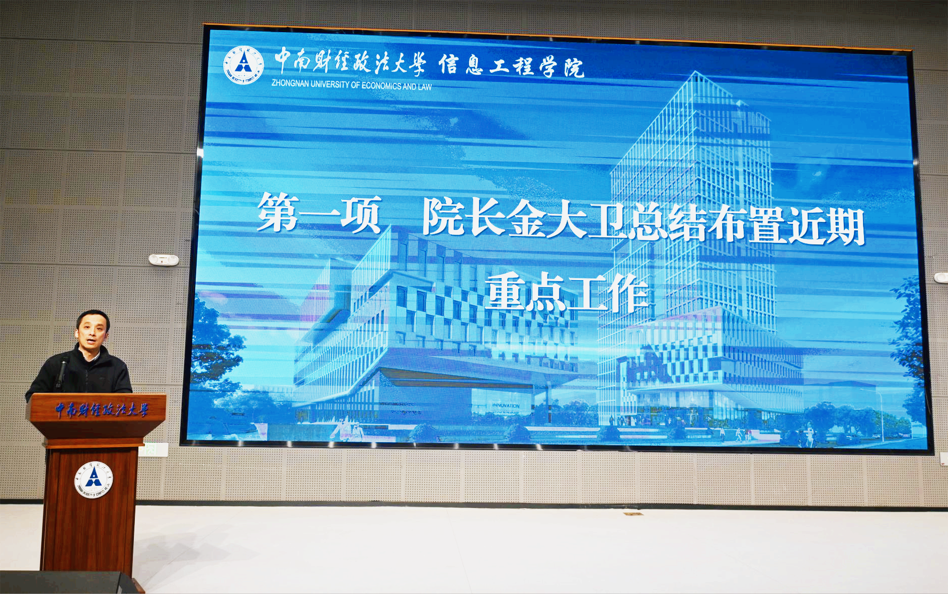 院长金大卫总结部署近期重点工作。金大卫通报了学院2025年度在学科建设、科研创新、“招培就”、开放办学、社会服务、校友工作和综合改革等方面取得的成绩,结合学院工作目标任务,分析研判学院高质量发展的重点突破口,勉励全院教职工振奋精神,以时不我待的紧迫感主动担当,把握教育强国建设机遇,为培养担当民族复兴大任的时代新人贡献学院力量。