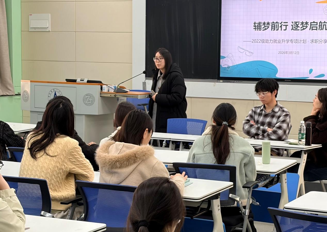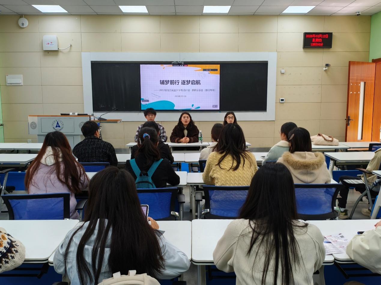 (学生通讯员 谢雪 通讯员 陈孝丁敬)为深入实施学院“数智赋能 五育融合”立德树人工程,扎实推进毕业生就业服务工作,提升学生在银行类求职活动中的核心竞争力,学院于3月12日通过线上线下相结合的方式举行2026届毕业生求职分享会(银行专场)。学院2024届优秀毕业生和2022级已就业学生代表担任分享嘉宾,2022级辅导员王安琪及40余名同学参加活动,2022级辅导员陈孝丁敬担任主持人。
