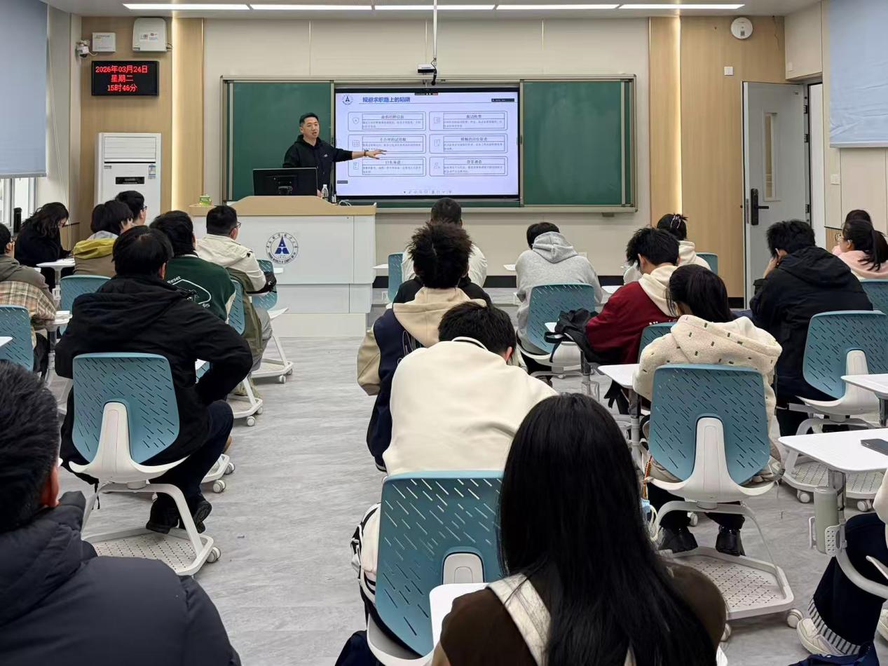 本科生辅导员陈孝丁敬结合学院近年就业情况与当前就业形势,向同学们提出三点建议:一是理性研判自身情况,明确职业定位与发展路径;二是提前做好充分准备,系统完善求职材料与技能储备;三是保持积极乐观心态,主动借助学院辅导员、导师等支持资源应对求职挑战。她鼓励同学们把握机会、主动规划,为顺利就业打下坚实基础。